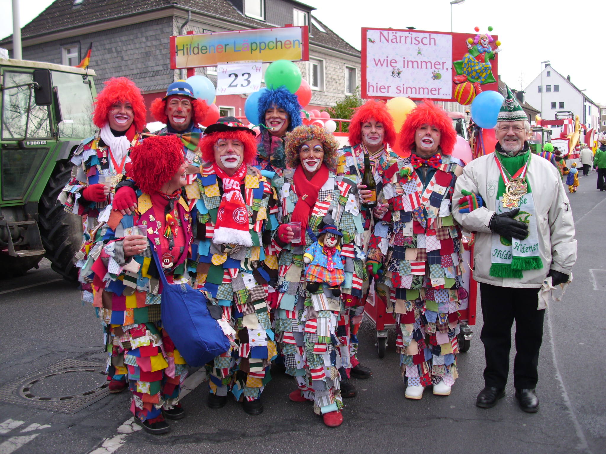 Besuch des Prinzenpaares mit Gefolge beim Wagenbau der Hildener Läppchen in der Garage. |